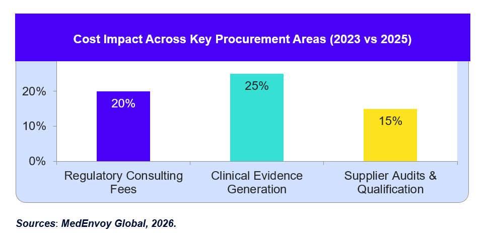 The implementation of the Unique Device Identification (UDI) roadmap under EU MDR and IVDR marks a significant regulatory shift for procurement functions. UDI rollout through EUDAMED increases procurement complexity and total landed costs due to expanded traceability, labeling updates, clinical documentation, post-market surveillance, and mandatory database registrations.